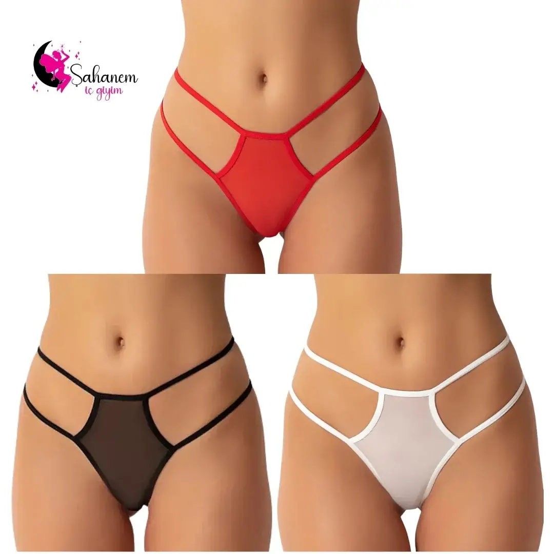 Ürün 3 parçadan oluşmaktadır.1 adet Siyah String. 1 adet Beyaz String. ve 1 adet Kırmızı String..Fantazi seksi TÜL kadın string, zarafeti ve çekiciliğiyle dikkat çeken bir iç giyim parçasıdır. Bu özel tanga, kadınların kendilerini özgüvenle ifade etmelerini sağlar. Yüksek kaliteli TÜL malzemelerden üretilmiş olan bu ürün, kullanıcısına rahatlık ve şıklık sunar. rengi ve zarif detaylarıyla göz alıcı bir görünüm sağlayan bu string, özel anlarda romantizmi ve tutkuyu arttırır. bu ürün, online alışveriş platformlarında aranan ve tercih edilen bir seçenek haline gelmiştir.